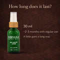 With regular use, one 30 ml bottle typically lasts around 2–3 months, depending on how often and how generously it is applied.