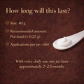 When used morning and evening as directed, one jar lasts approximately 2–2.5 months.