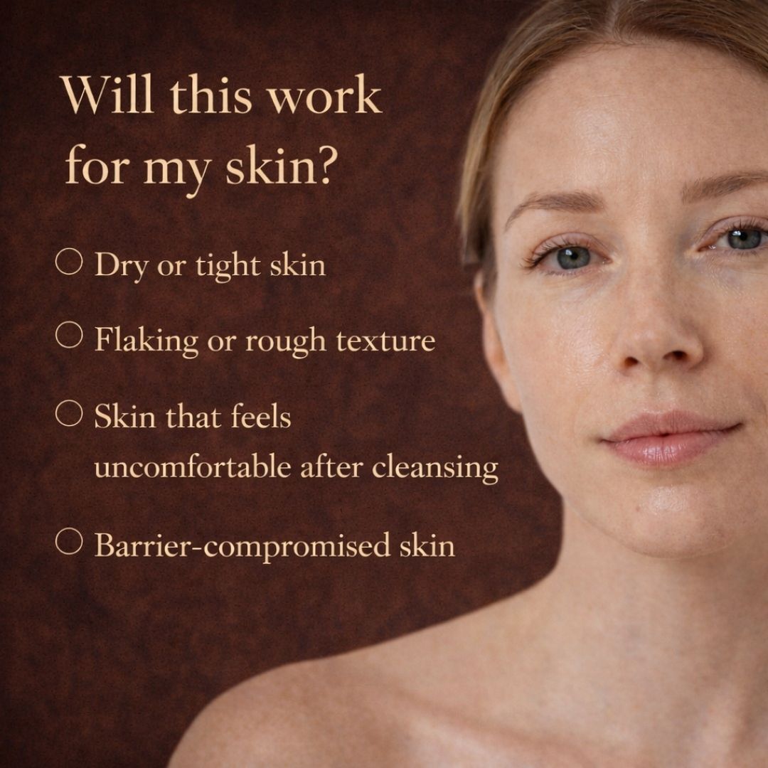Dry skin often lacks moisture and lipid support, leading to tightness and visual roughness. This formula combines: