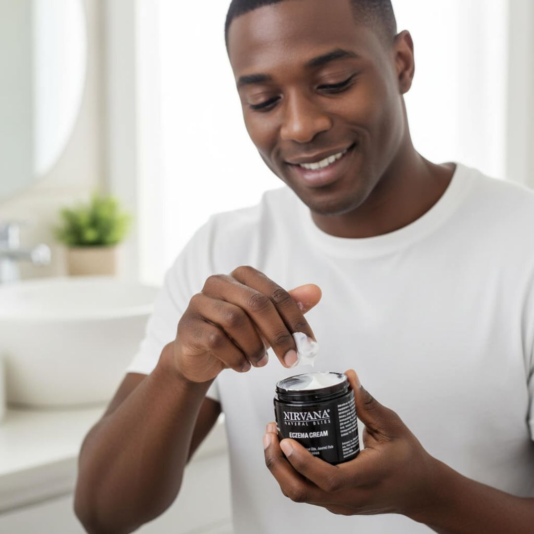 Nirvana Natural Bliss Eczema Cream helps relieve dryness, itchiness, and discomfort associated with eczema-prone and sensitive skin by supporting the skin’s natural barrier and improving hydration.