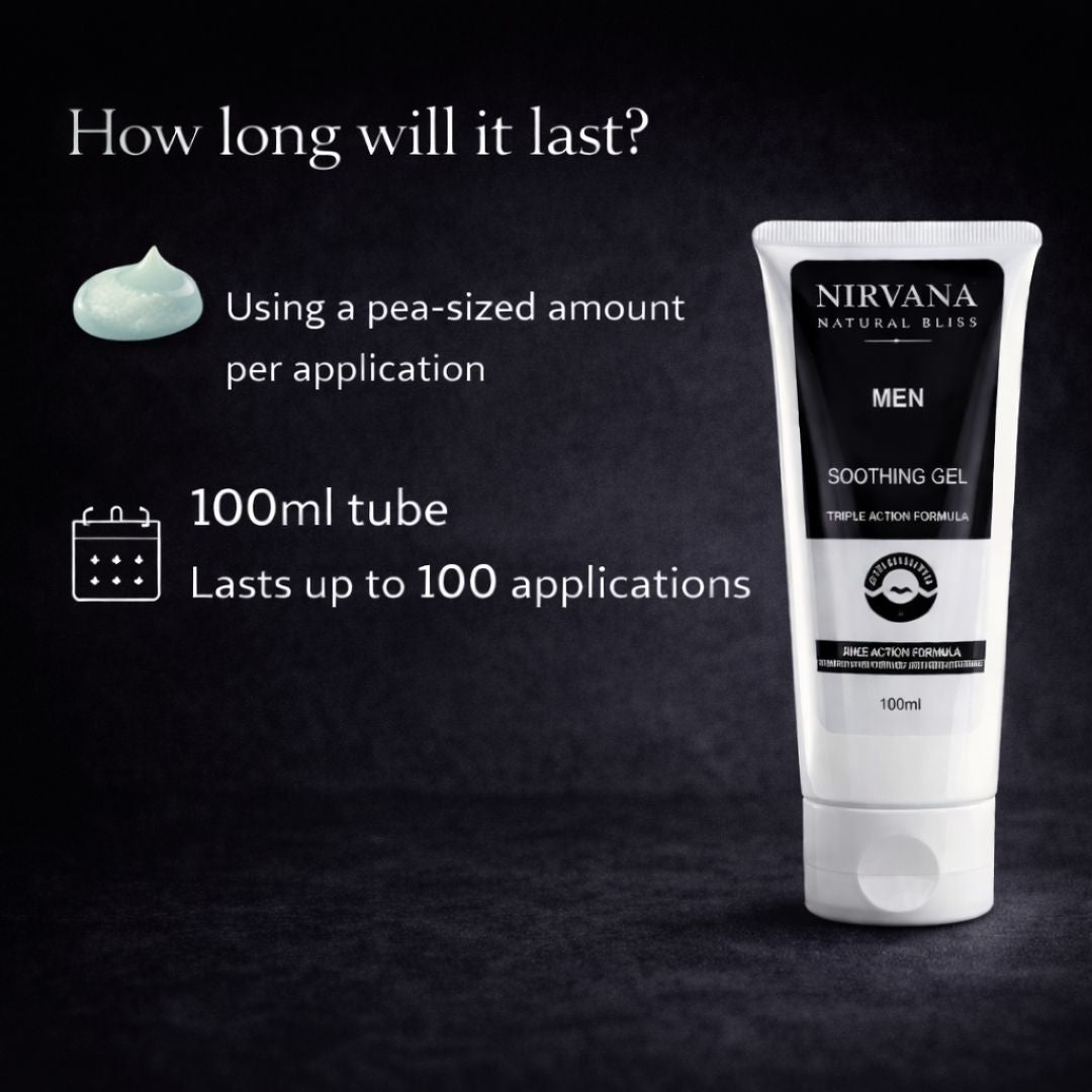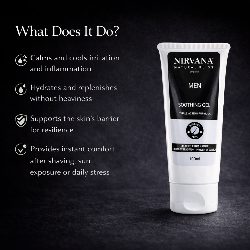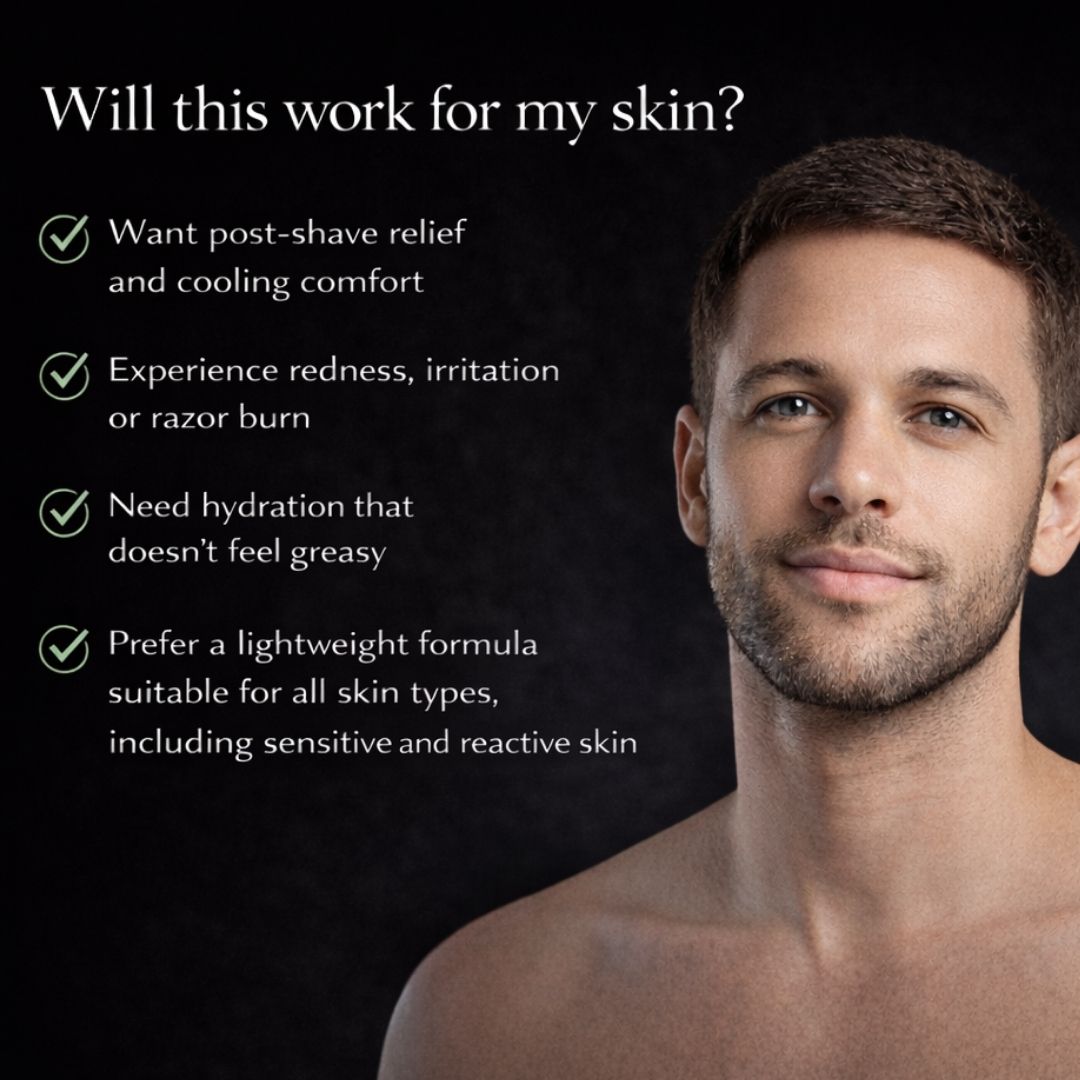 A fast-absorbing men’s soothing gel that calms irritation, hydrates skin, and delivers instant post-shave comfort without oiliness.